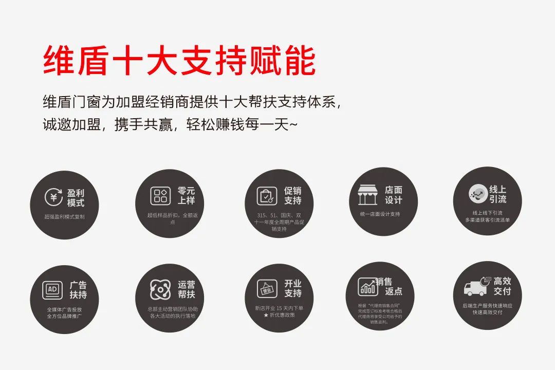 匠心不朽,卓爾不群。維盾秉持初心,以匠心造福的理念造好窗,讓千家萬戶靜享高品質(zhì)舒適生活,筑造美好人居生活新體驗;以“合作共贏”的加盟理念,為全國各地想創(chuàng)業(yè)的伙伴們提供加盟十大幫扶政策:全媒體廣告投放、線上線下多渠道獲客引流派單、逢年過節(jié)周期性產(chǎn)品促銷支持等,助力經(jīng)銷商在開店以及經(jīng)營過程減少阻礙,提早盈利,維盾展會首日短短一天,便已連下10多城。