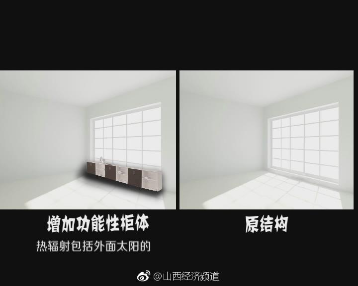 方法二:還可以設(shè)置一個功能性柜體,使窗戶面積相對減少,這樣熱輻射包括照度也會相應(yīng)減少,起到一定隔熱效果。