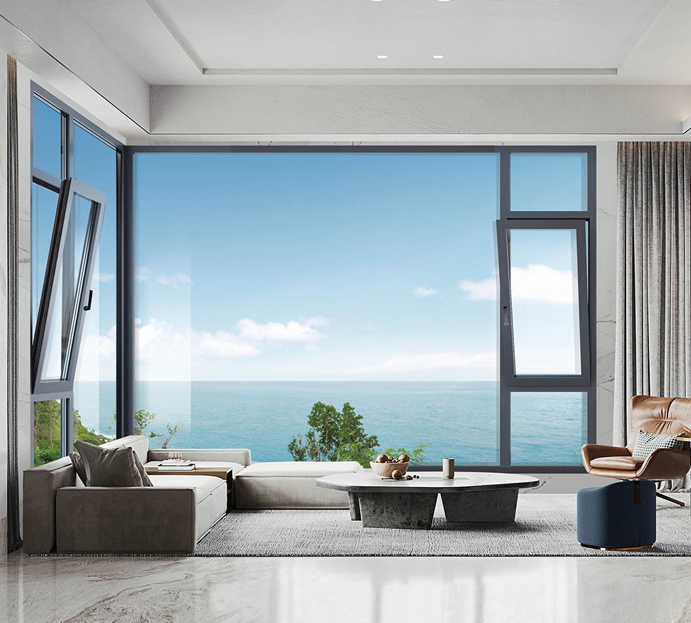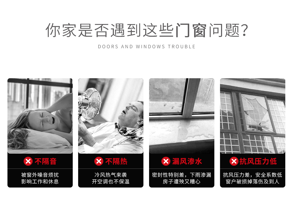 工藝配置:連體式防磕碰金屬護角,方形閉口扣條,一體角碼WESS注膠,微波硫化焊接式/一體折彎中央密封膠條,防塵條,中挺榫卯連接,泰諾風靜音傳動鎖條,地漏排水