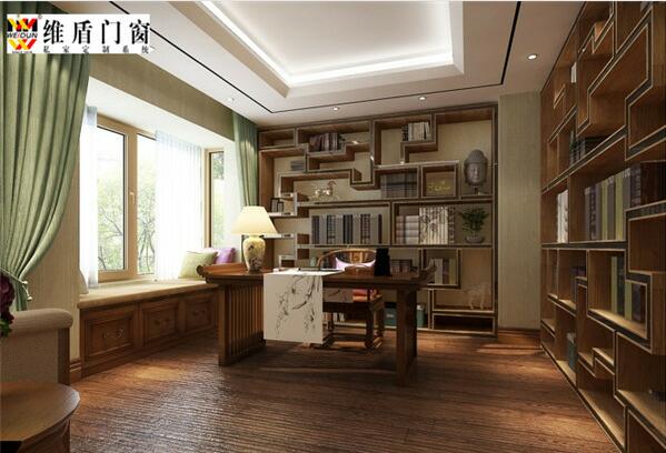 維盾混搭風格書房斷橋鋁包木門窗效果圖之一